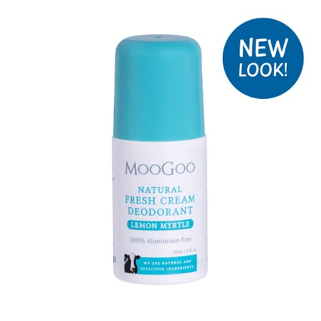 MooGoo Fresh Cream Deodorant Lemon Myrtle. Most antiperspirants work by clogging pores with Aluminium salts. Aluminium in our armpits? No thanks. MooGoo feel that aluminium belongs in our roofs, not under our arms! This formula works by allowing perspiration (which is odourless) and controlling odour causing bacteria. No bacteria, no smell.
