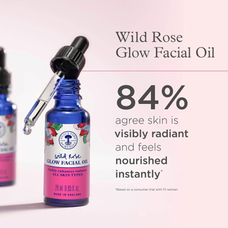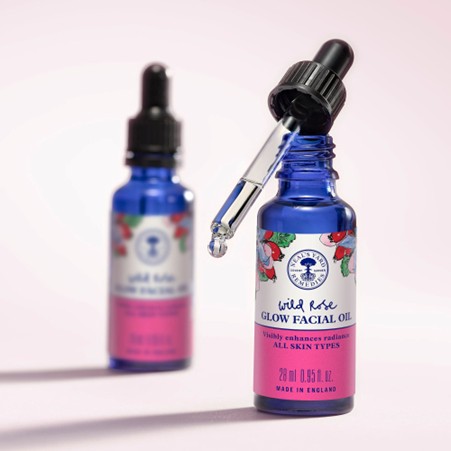 Neals Yard Remedies Wild Rose Glow Facial Oil – Intensely nourish and replenish your skin with this luxurious, certified organic facial oil. This light, dry oil blend features organic wild rosehip seed oil and naturally derived olive leaf extracts, which effortlessly sink into the skin to restore and renew for enhanced radiance. A unique combination of light oils and plant-derived fatty acids helps to condition, hydrate and refine, leaving skin visibly restored with a natural, radiant glow. The formula softens, smooths and supports the skin’s natural barrier for a healthy appearance.