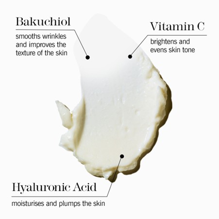 • Brighten up and forget your wrinkles with slow-release Vitamin C, plant-based Bakuchiol, and plumping Hyaluronic Acid for softer, smoother, good-looking skin.