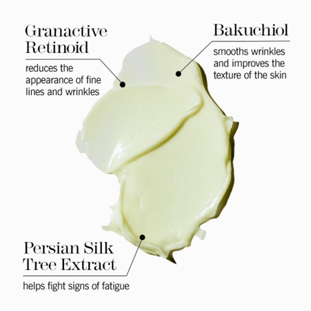 • An overnight moisturiser with a potent blend of Granactive Retinoid, Bakuchiol, Hyaluronic Acid and Macadamia Oil for nourished, protected and firmer-looking skin.