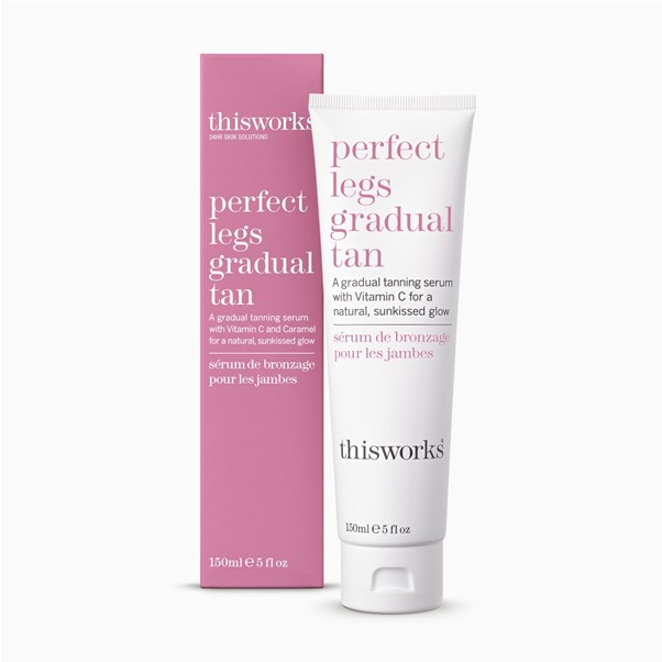 This Works Perfect Legs Gradual Tan – A hard-working Superblend of Caramel and DHA to add a natural golden colour, brightening Vitamin C and moisturising Shea Butter for a radiant, long-lasting glow.